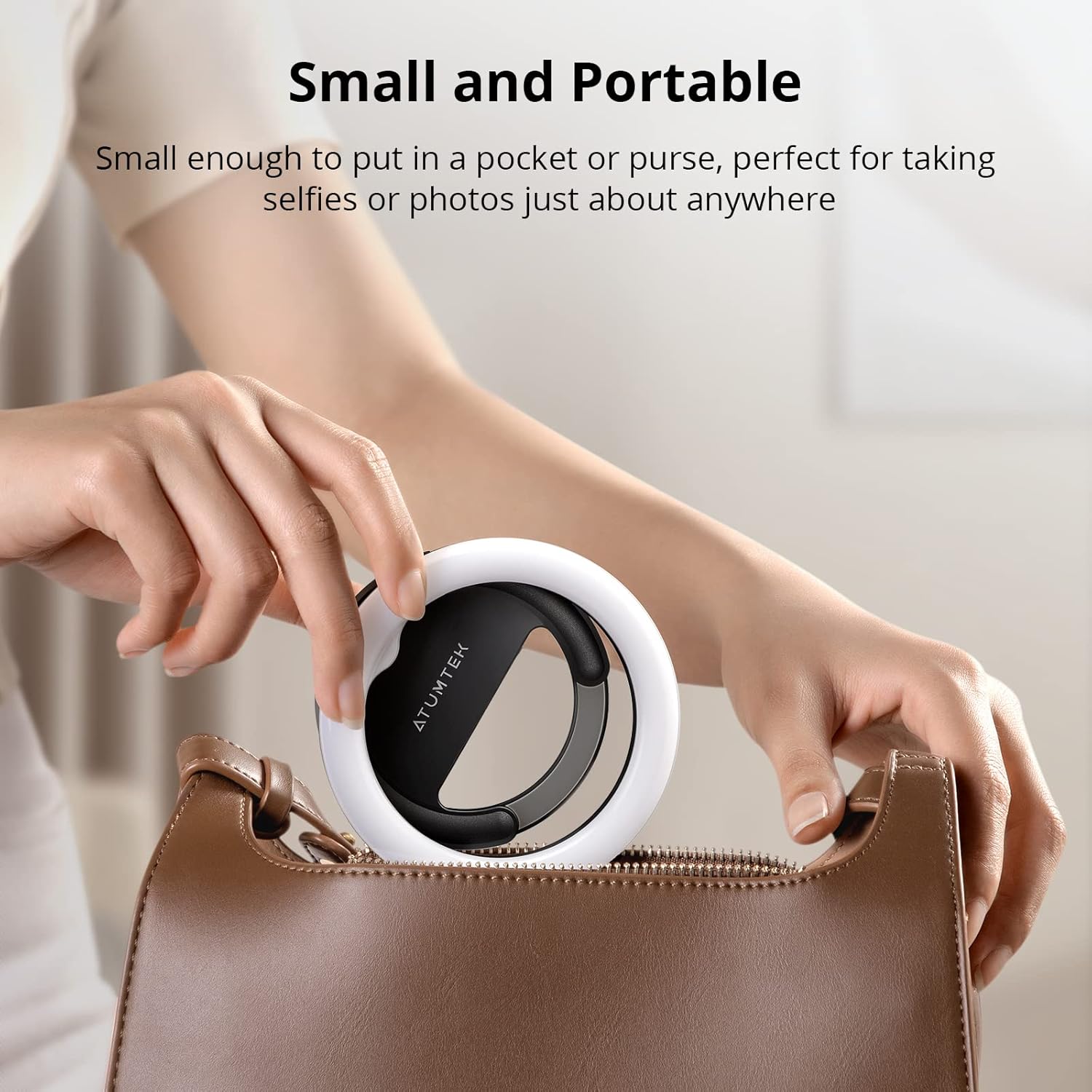 Oplaadbare LED-ringlamp met 3 lichtstanden en instelbare intensiteit. Perfect voor selfies, video's en streaming. Universele smartphoneclip.